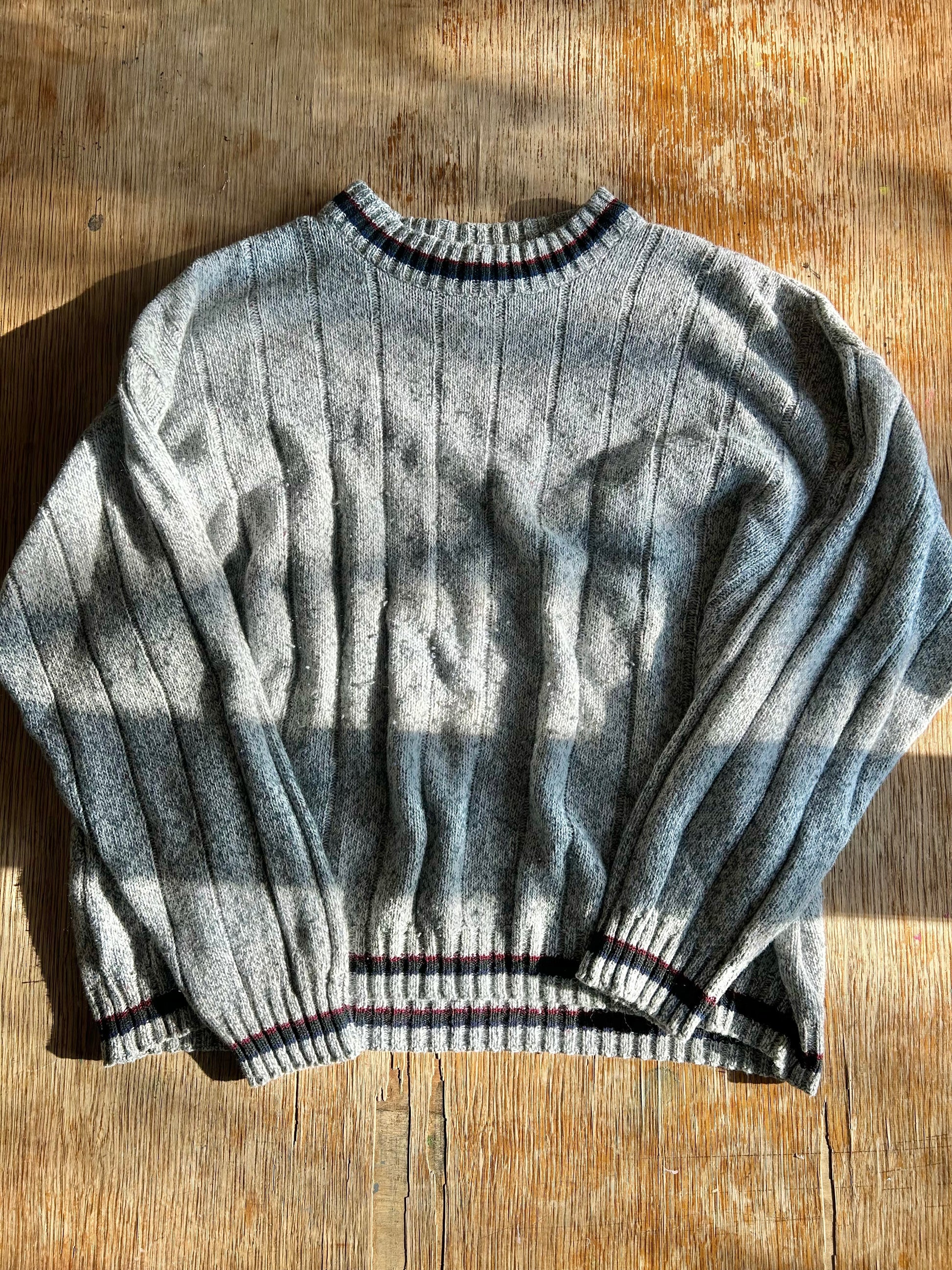 Oversized Grey Melange Sweater with trim in green/navy/maroon
